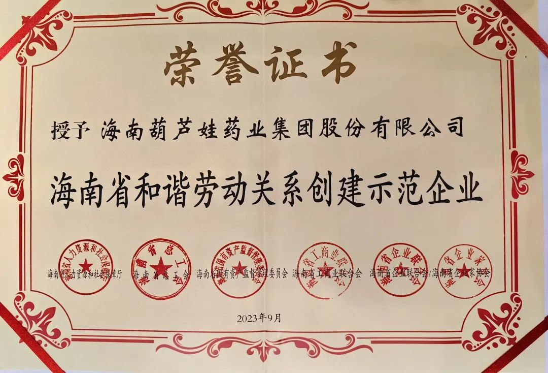 k豆钱包药业集团获评“海南省和谐劳动关系创建示范企业”